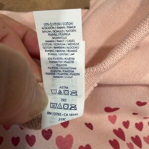 Charming pink sweatshirt with heart pattern. Valentine’s Day. See photos for measurements. This is an XL, unisex fit.