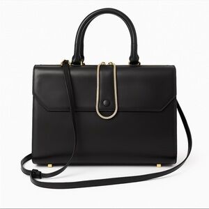 Structured leather design with silver-tone hardware and removable crossbody strap