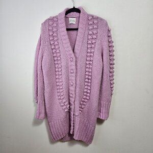 Hayley Menzies Gloria Alpaca Bubble-Knit Long Cardigan Sz M Lilac
