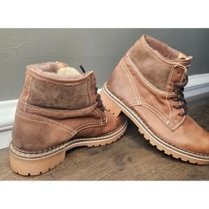 Pajar Women's Brown Faux Fur Leather Waterproof Lug Sole Canada Combat 6.5