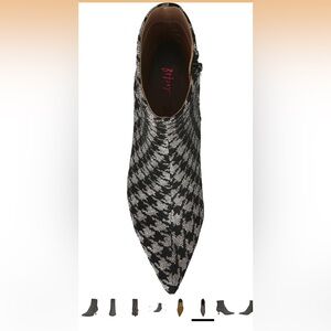 Betsey Johnson Parkker Pointed Toe Kitten Heels Houndstooth Textile Booties 7.5