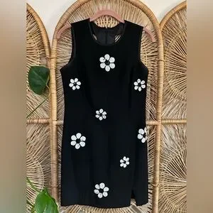 Vintage 90s Y2K floral flower power 60s mod gogo little black dress sequins