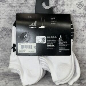 NWT Under Armour Performance Tech No Show Socks Youth 13.5K-4.5 White 6-Pack