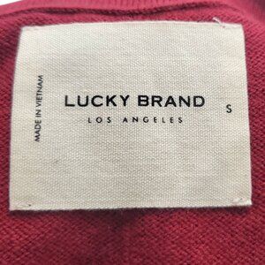 Lucky Brand, women's sweater, V-neck sweater, red sweater, cotton sweater, small sweater, casual wear, comfy sweater, fall fashion, knitwear, long sleeve, new with tags, made in Vietnam, lightweight pullover
