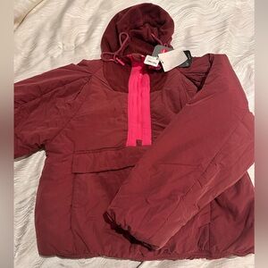 Burgundy jacket with pink accents. Features PrimaLoft insulation. Ideal for warmth and style.New with tags so warm so soft , as you can see in the pictures there’s small dots i think it’s easy to go away when you clean it easily ✨✨