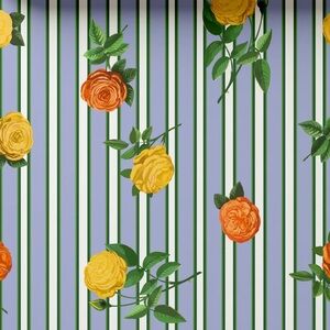 Timeless blue and white stripes meet bright blooms in a print that is unmistakably Katie Kime.
