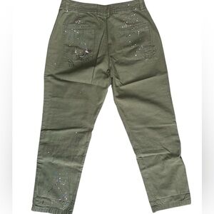 ZARA Green Cropped Cargo Pants with Paint Splatter Design