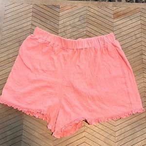 Free People Beach Twyla Ruffle Slubbed Cotton Pink Shorts with Micro Ruffle