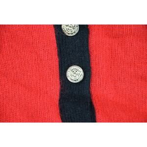 Wrap yourself in the essence of 80s extravagance with this Lauren Cole red cardigan, a blend of sophistication and statement. Every stitch whispers the tale of a glam rock era, imbued with the softness of angora, ready to elevate your wardrobe to legendary status.