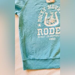 SCRAPBOOK Turquoise Rodeo Sweatshirt w Raw Hem