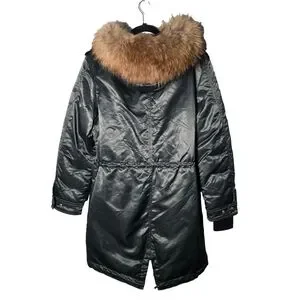 Mackage Small Down Parka Real Fur Trim Hood Long Puffer Coat Dark Green Womens S