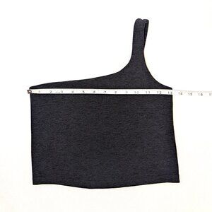 Truly one-of-a-kind. This unique asymmetrical one-shoulder top offers the athleisure wear comfort you crave with an elevated street style aesthetic. Complete with built-in shelf bra and cropped length perfect for wearing with leggings or bike shorts. Style# SD4583
