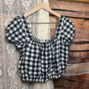 Madewell gingham crop with cute puff sleeves and front button enclosure. Women size small measures 17-18” across bust. In excellent preowned condition. Possibly never worn. Will ship by the next day unless it’s a holiday, a Sunday, or I’m on vacay :) Make me an offer to make it yours.