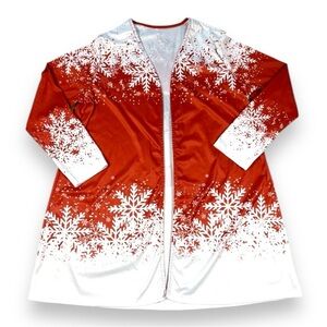 New Women’s 2XL Festive Red/White Long Sleeve Tunic Length Lightweight Jacket