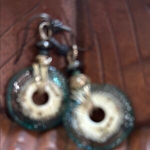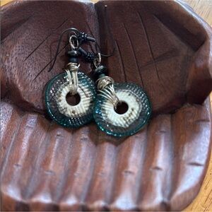 These exquisite earrings showcase a harmonious blend of silver and green hues, crafted in a circular shape with a unique textured design. The intricate pattern and Sterling, silver wire wrapped adds a touch of elegance, making them a standout accessory for any occasion. Perfect for those who appreciate a blend of classic and contemporary styles.