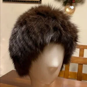 Brown Fur Hat, mink real brown fur, woman hat, new, România
