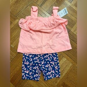 Carter's Coral Ruffle Top and Floral Shorts Set NWT Size 9 months