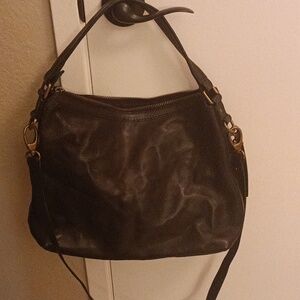 FRYE AND CO. Black Leather Shoulder Bag with Gold Accents