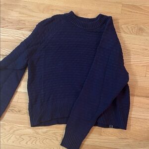 Classic navy sweater with a textured knit. Crew neck design. Perfect for layering.