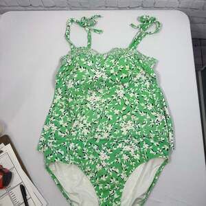 Draper James x Lands' End Green Floral Two Piece Tankini Swimsuit Size 16