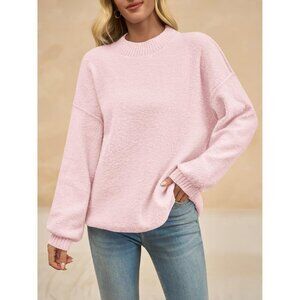 Pink Womens Fuzzy Crew Neck Sweater — Cozy and chic for fall and winter.