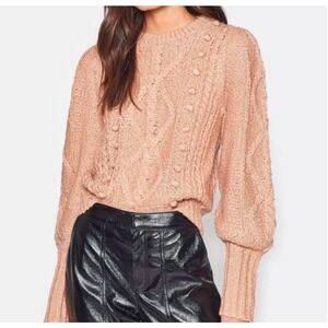 Joie Bia Popcorn Cable Knit Wool Blend Puff Long Sleeve Ginger Pullover Sweater Size M Ribbed Crewneck and cuffs