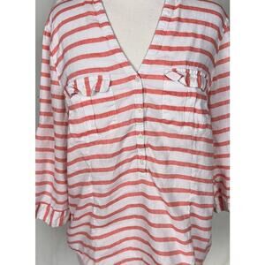 Gap Factory Large Striped 3/4 Sleeve Top Linen Cotton Blend