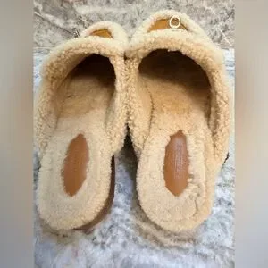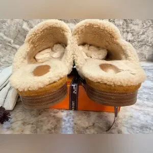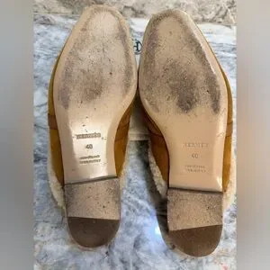 Hermes Oz Mules suede goatskin and shearling, gold color Size 40, US 9,5. Slides