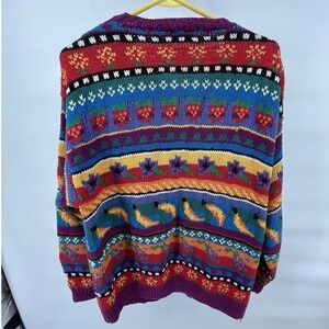 Vintage L.L.Bean Sweater Womens Med Multicolor Cardigan Ramie Cotton Fruit 90s