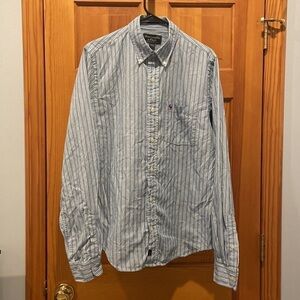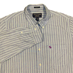Abercrombie & Fitch Blue and Green Pinstripes Muscle Fit Long Sleeve Button-Down