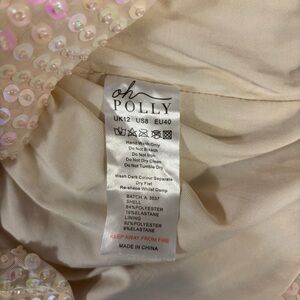 Oh Polly White Sequin Mini Dress SZ 8 Spaghetti Strap, Cross Back, Lined, Bridal
