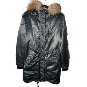 Mackage Small Down Parka Real Fur Trim Hood Long Puffer Coat Dark Green Womens S