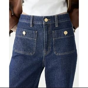J.Crew Slim Wide Jean Sailor Pockets Regina Wash Blue Denim Gold Buttons