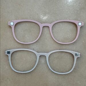 One pair is Grogu, ombré from pinkish/purple/blue (hard to capture the name “Reese” on back of Grogu pair with the glare, I tried several times, but they are both purchased from the Pair eyewear website for the Reese glasses!