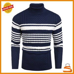 Men's Slim Fit Turtleneck Sweater Thermal Pullover Knitted Twisted Design