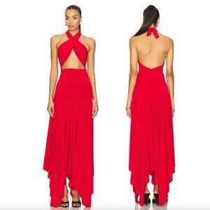 Norma Kamali Convertible Midcalf Dress in Tiger Red Halter Maxi Midi Gown XS