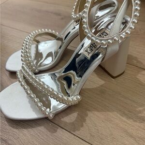 Badgley Mischka Pearl-Adorned White Heels