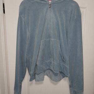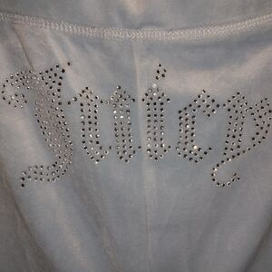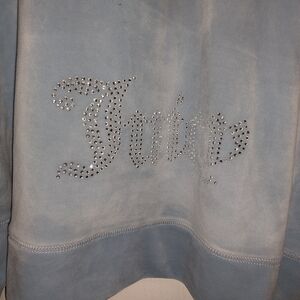 Forever 21 x Juicy Couture pale blue velour tracksuit that includes the hoodie & pants. Has the signature "JUICY" rhinestone design on the back of the jacket as well as the pants.