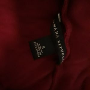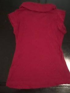 Dark red, size small, cowl neck shirt. Fantastic feeling material and in great condition! The sleeves are in between a cap sleeve, and sleeveless (depening on what size upper arm is). Great for a stylish summer wear!