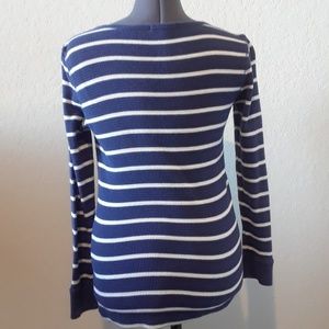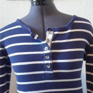 Long sleeved, navy blue and white striped, waffle shirt. Size small and only worn a few times. Buttons in the front.