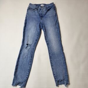 Good American Jeans Medium Wash Distressed Denim High Waisted Step Hem Size 4/27