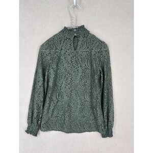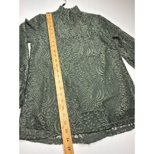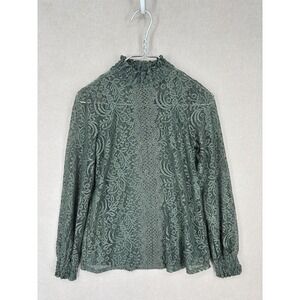 Cable & Gauge Blouse Womens Small Green Crochet Lace Boho High Neck