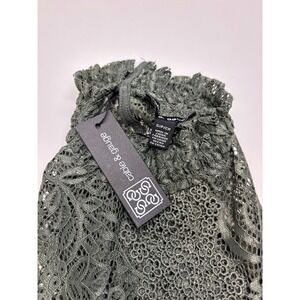 Cable & Gauge Blouse Womens Small Green Crochet Lace Boho High Neck New