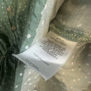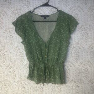 One Clothing Womens Small Blouse Green With Poka Dots Vneck Short Sleeve Rayon