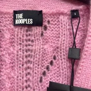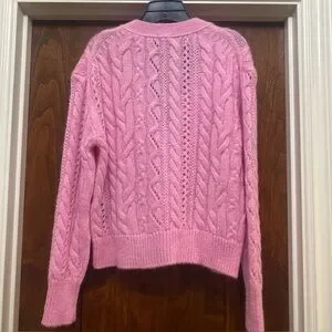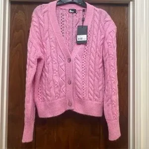 The Kooples Womens Cable Knit V-Neck Cardigan in Pink French Sz 2 US 6 NWT MSRP $345