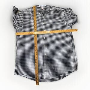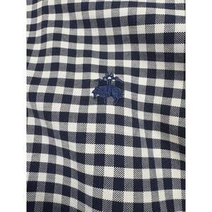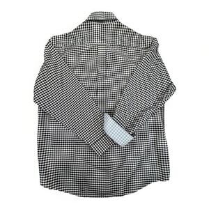 Navy blue and white checkered pattern with stylish light blue contrast check cuffs. Made from 100% American Supima Cotton, soft, durable, and wrinkle-resistant. Great condition with no notable flaws.