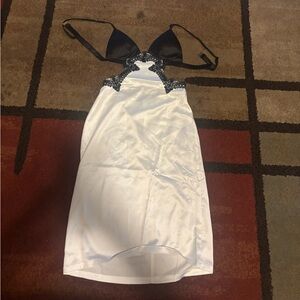 Step out in style with this chic asymmetrical dress. Featuring a striking black and white design, it's perfect for any occasion.