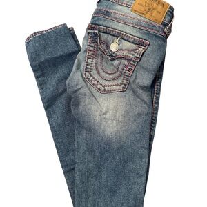 True Religion Women’s Pink Stitch Skinny Blue Denim Jeans 26