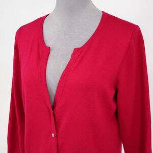 WHBM Sweater Womens Large Dark Pink Snap Front Crop Cardigan Knit 3/4 Sleeve