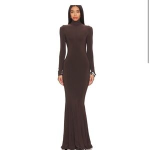 Norma Kamali Long Sleeve Turtle Fishtail Gown in Chocolate Medium